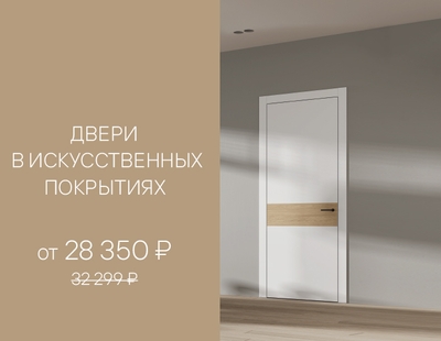 С 1 по 28 марта при покупке дверей коллекций Центро, Галант, Нео, Фридом, Планум, Планум Про дарим скидку 25% на полотно в искусственных отделках: ПЭТ, Ламинатин, Технофойл ламинатин, Сиплекс ламинатин.