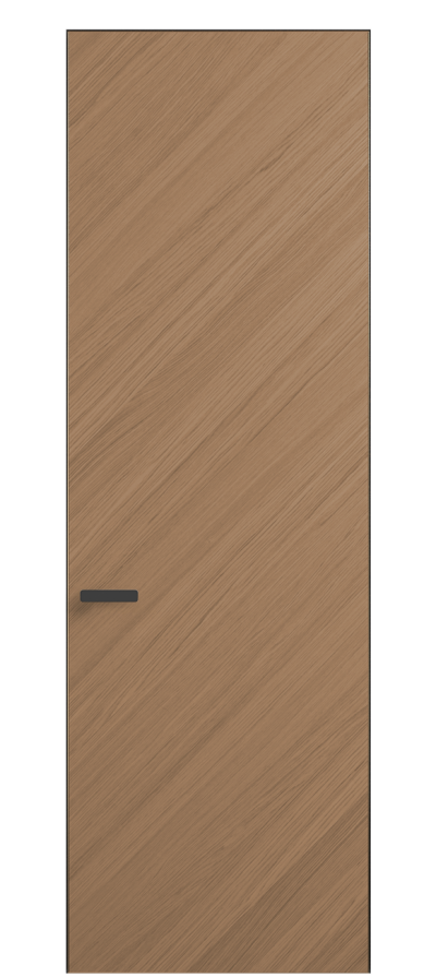 Полотно Rift в скрытом алюминиевом коробе становится полноценным элементом декора. В коллекции представлено 9 моделей дверей в высоте до 3 метров. Рисунок раскладки шпона варьируется от простого до сложного. «Рубашка» для каждого полотна подбирается вручную по цвету, текстуре и фактуре.