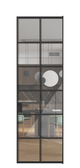 Минималистичный профиль повторяет форму профиля алюминиевых раздвижных перегородок Формато, что позволяет легко сочетать оба решения в одном пространстве.